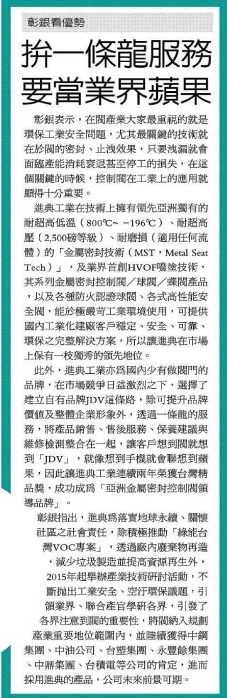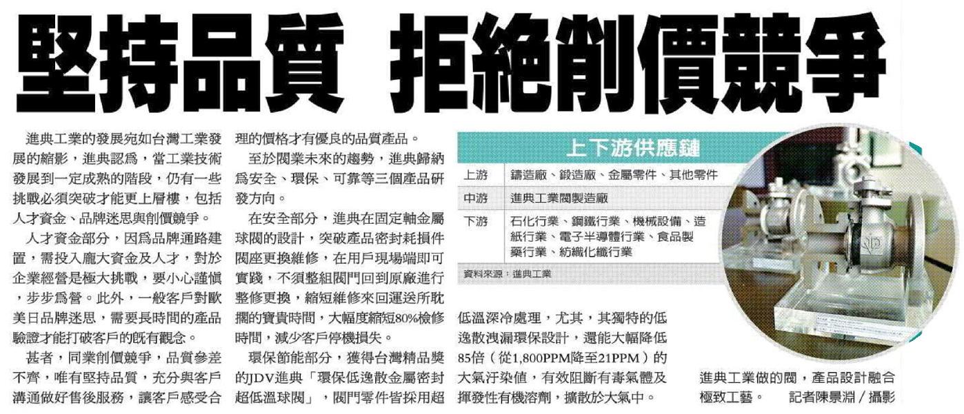 JDV進典控制閥 連五屆獲台灣精品獎 _ 經濟日報-新聞稿